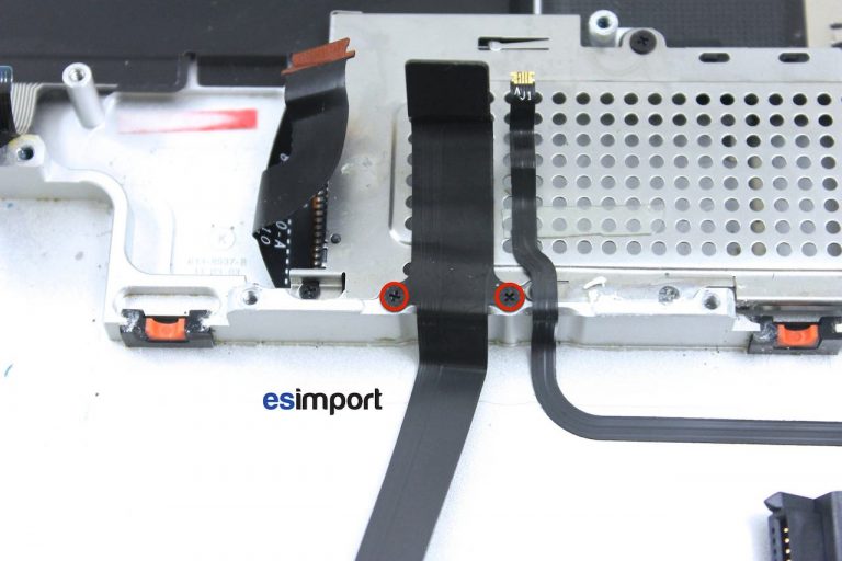 Dévisser les 2 vis qui fixent le câble du disque dur au topcase :