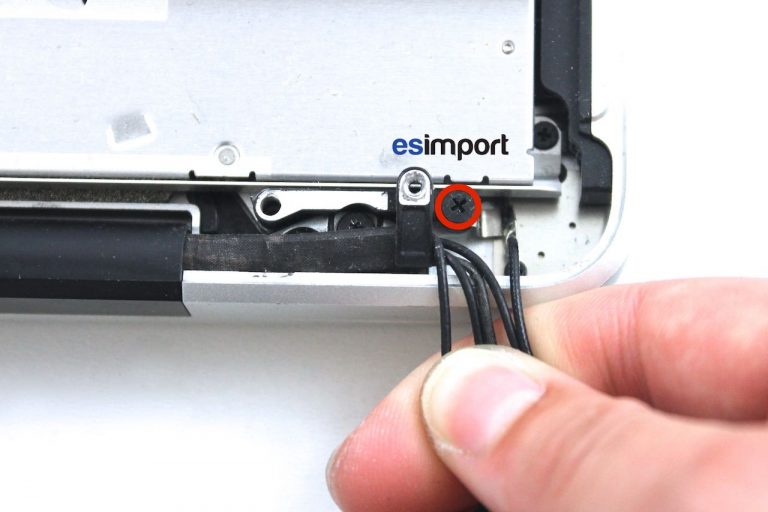 Dévisser la vis de maintien des câbles caméra et wifi/bluetooth :