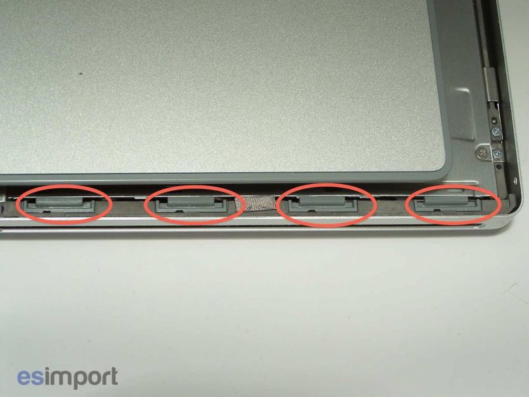 Dévisser les 2 vis de part et d’autre des charnières du mac: