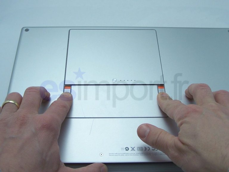 Sortir la batterie du macbook en déverrouillant les deux verrous simultanément :