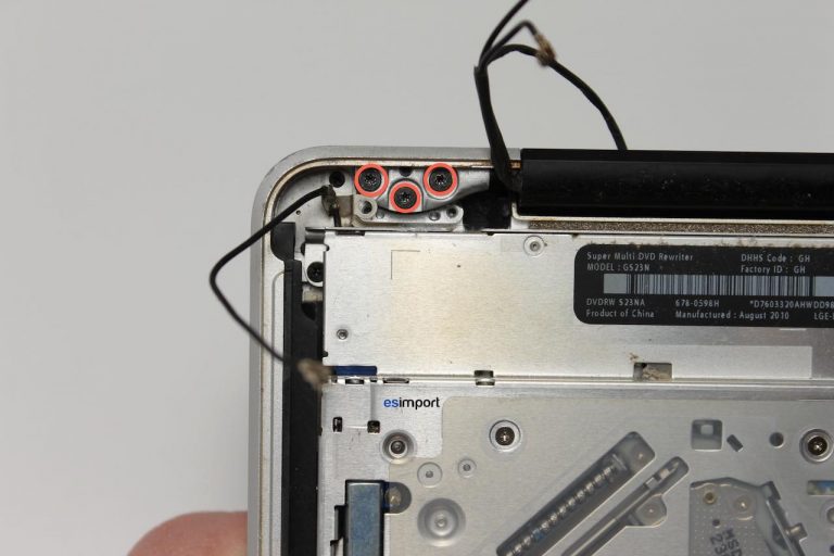 Une attention toute particulière doit être portée lors du branchement du connecteur LVDS de l’ensemble écran sur la carte-mère. Attention notamment au sens : un mauvais branchement de ce connecteur endommagera la carte-mère et causera un défaut permanent de rétro-éclairage. Il faudra alors faire réparer la carte-mère.