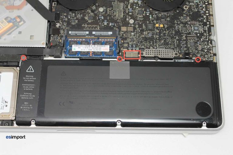 Il n’est pas nécessaire de dévisser la batterie, mais il faut en revanche la débrancher de la carte-mère pour éviter tout court-circuit :