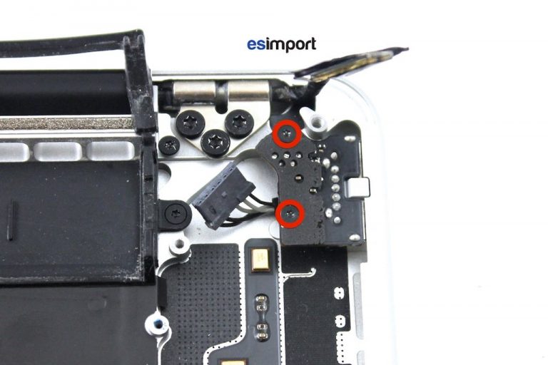 Dévisser les 2 vis qui maintiennent le connecteur MagSafe au topcase :