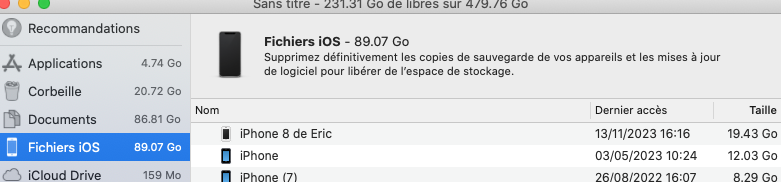 - soit en cliquant sur le bouton 'gérer les sauvegardes' sur Finder